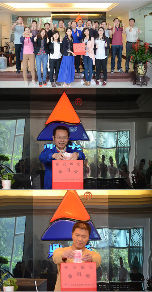2013年4月20日,四川省雅安市發生7.0級地震,地震造成了巨大的人員傷亡,對災區造成了極大的破壞。 面對突如其來的自然災難,鼎安公司心系災區,公司領導第一時間作出反應。4月22日下午,鼎安公司黨支部在全公司范圍內組織了“支援雅安震災捐款活動”。鼎安公司全體員工踴躍參加,積極奉獻愛心,一共募捐到人民幣8646.5元、美金200元,為雅安同胞獻上自己的一份力量。 祝福雅安!雅安,加油!我們與您同在!