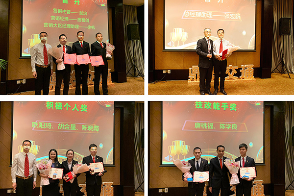 隨后,公司為2019年作出突出貢獻的員工進行表彰,分別有以下幾個獎項:技改能手獎、積極個人獎、爭先創優標兵獎、先進個人獎、優秀團隊獎、晉升獎,其中固封項目總監劉育銳榮獲固封項目獎、大區經理助理徐帆榮獲特別項目獎。最后,公司領導為今年的金鼎獎得主大區經理助理鄭滿生頒發獎項,以激勵大家來年再接再厲,再創佳績!