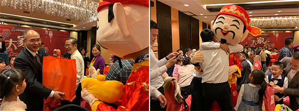 “財神到,財神到,好走快兩步!”新年晚會大家最期待的嘉賓當然是財神爺了,與財神爺握握手,明年財運滾滾來!財神爺還為大家帶來了新春大禮包,人人有份永不落空。